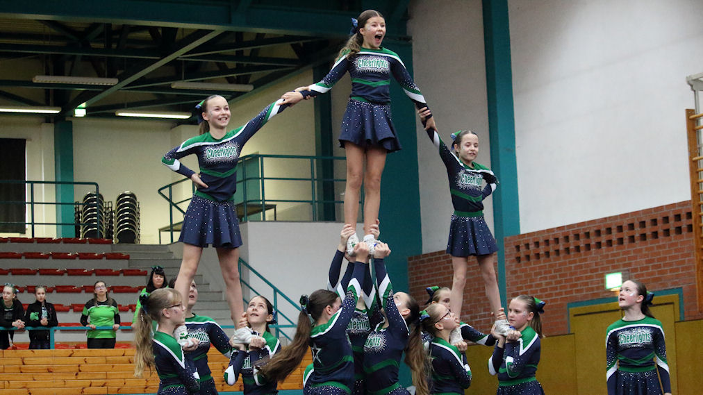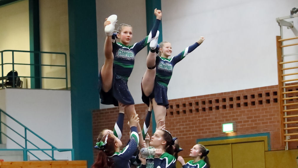 Für die diesjährige Regionalmeisterschaft hatten sich zwei unserer Teams qualifiziert: die Sparky Cheerlights (Youth Level 1) und die Rocky Cheerlights (Youth Level 2). Am letzten Samstag im Januar war es für die beiden Teams soweit. Nach kurzem Haare-Machen in der Halle in Waldheim und einer kleinen ungewollten Stadtrundfahrt durch unsere schöne Heimatstadt, ging es wieder nach Riesa. Dort trafen sich am besagten Samstag die besten Teams aus Sachsen, Sachsen-Anhalt, Thüringen, Brandenburg und Berlin, um ihre Routines der Jury zu präsentieren.