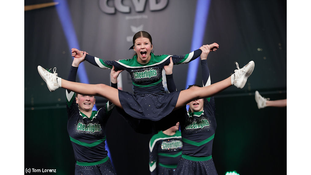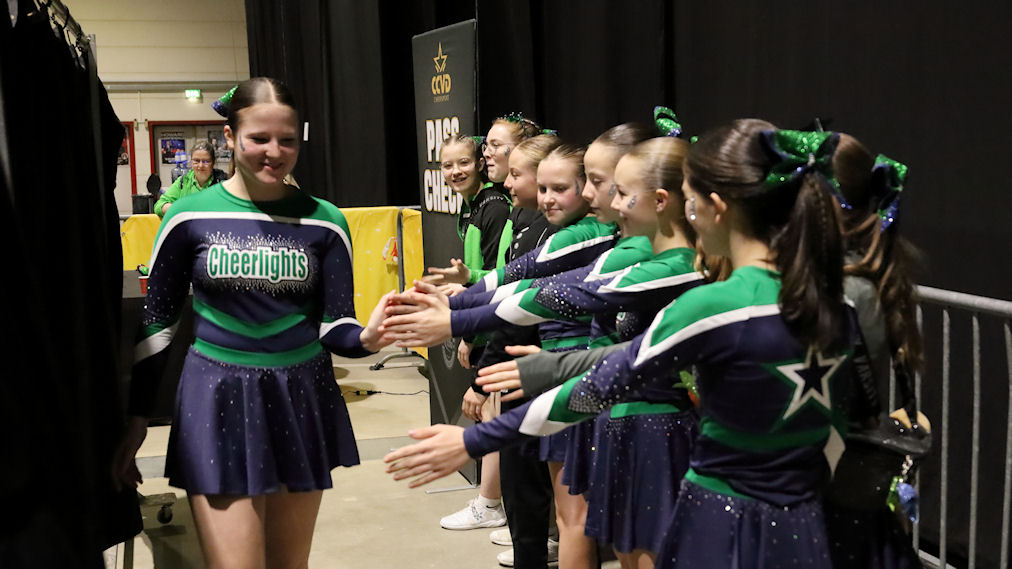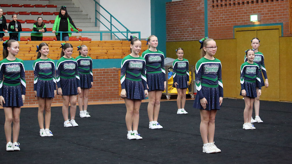 Beinahe direkt nach Ankunft und Check-In ging es für unsere Sparkys auch schon in die Team-Area und zum Warm-up. Der anschließende Run Through, wobei sie von den Rockys lautstark angefeuert wurden, lief gut, auch wenn es später auf der Matte einige Kleinigkeiten zu verbessern galt. Trotzdem nahmen unsere Sparkys ihre tolle Energie mit. Hinter dem Passcheck haben sie sich nochmal zusätzlich motiviert und die Coaches richteten noch die letzten Worte an das Team, bevor es auch schon losging. Unter lautem Applaus der Rockys und der mitgefahrenen Eltern betraten die Sparkys die wunderschön inszenierte Wettkampffläche. Für ihre erste Regionalmeisterschaft im Level 1 und nach einer von Krankheit und anderen Abwesenheiten geprägten Vorbereitungszeit zeigten die Sparkys eine tolle Routine. Auch wenn sich ein paar kleine Unsauberkeiten eingeschlichen haben, kann jeder auf das Gezeigte stolz sein, wir als Verein sind es auf jeden Fall. Die Jury hat die Routine der Sparky Cheerlights mit guten 6,51 Punkten bewertet. Damit haben sie in einer sehr leistungsstarken Kategorie den 12. Platz von 14 Teams erreicht.