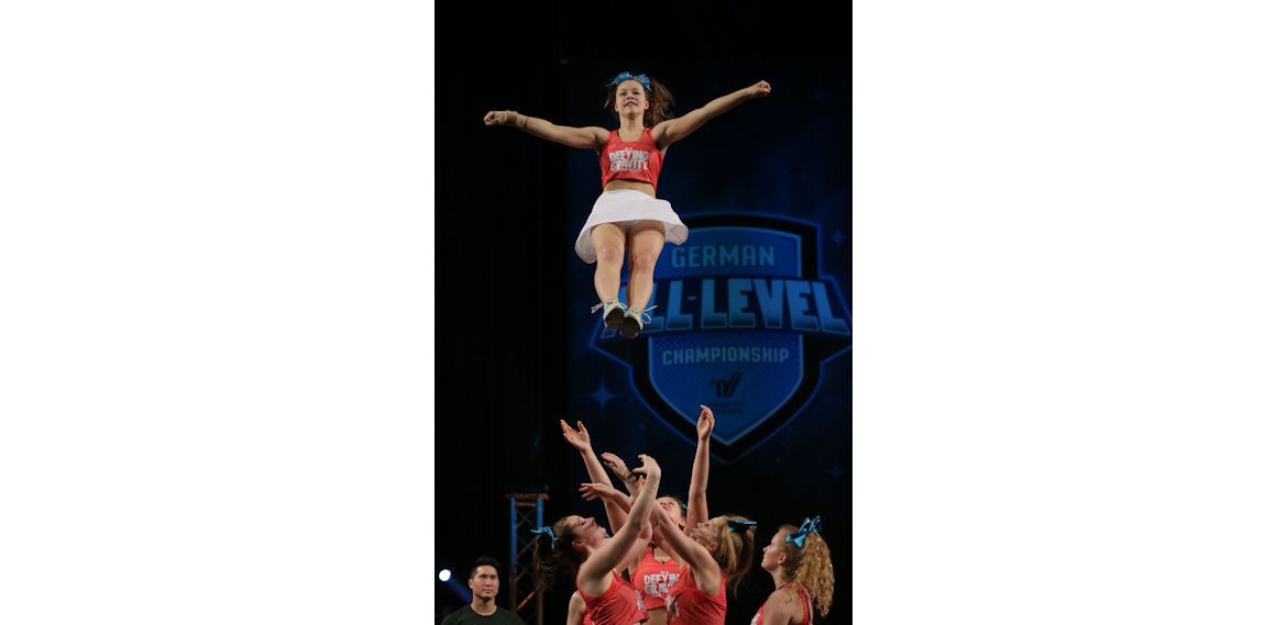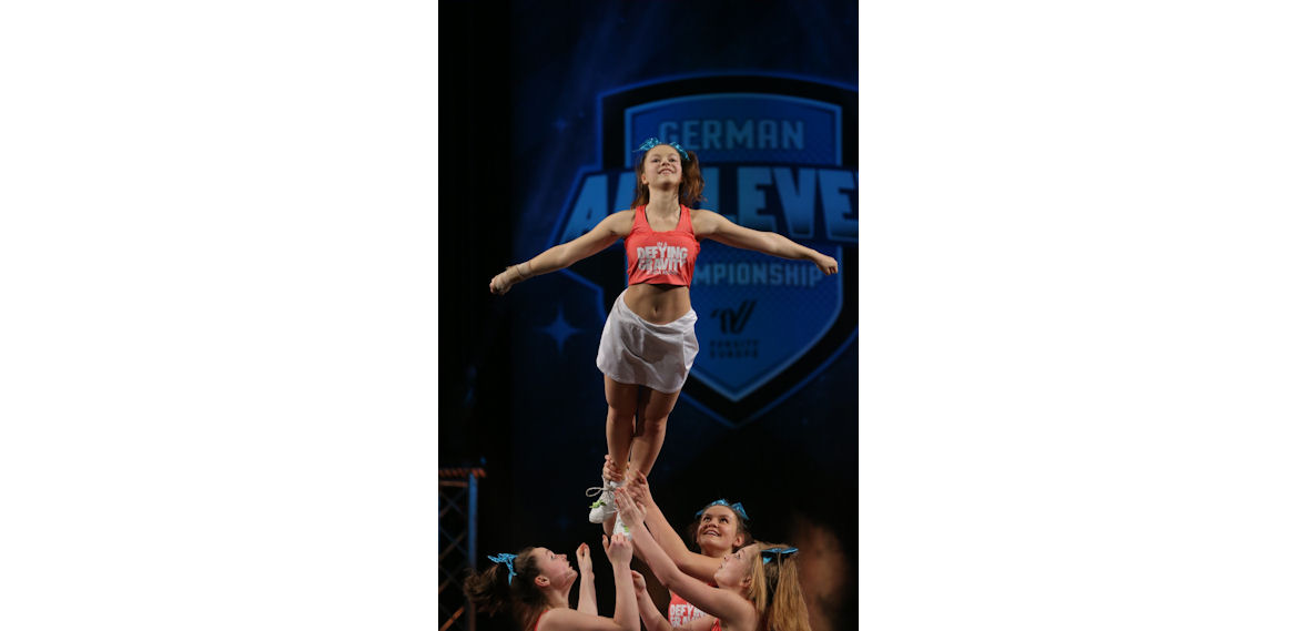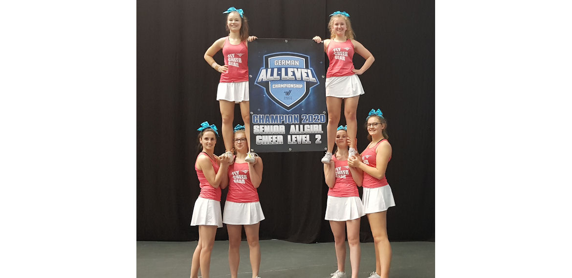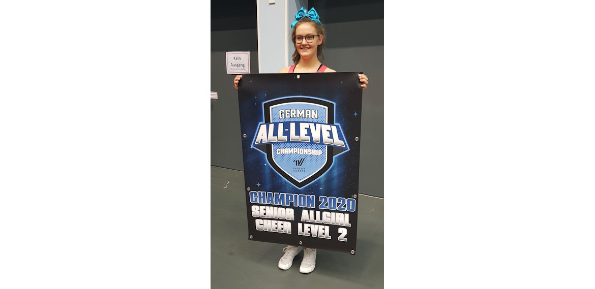 Am 19.01.2020 hat unsere Gruppe Pearlplosion an ihrem allerersten Cheerleader Wettkampf teilgenommen. Die German All Level Championship bietet besonders neuen Teams die Möglichkeit, sich ohne Druck einer Fachjury zu stellen. So fuhren die sechs Mädels gemeinsam mit ihren Eltern am Sonntagmittag nach Hof. Nachdem Frisur und Outfit saßen und ein erster Blick auf die Wettkampffläche geworfen wurde, ging es auch schon auf eine von drei Warm-Up Flächen. Etwas komisch war das alles schon: die anderen angereisten Teams hatten fast alle 15+ Mitglieder und waren mit mehreren Teams aus ihrem Verein angereist, während unsere Sechs auf sich alleine gestellt waren. Aber sie hatten ja nichts zu verlieren. Deshalb ging es nach dem Warm-up auch ohne Umschweife, gleich weiter zum Run Through, wo erstmal der Boden (ein sogenannter Spring Floor) vorsichtig ausprobiert wurde. Dieser besteht nämlich nicht nur aus einfachen Matten, sondern ist eine Art abgeschwächtes Trampolin, weshalb es für unsere Mädels ganz neu war, auf diesem Boden ihre Routine (Choreo) durchzumachen. Nach der sehr anstrengenden Durchlaufprobe gab es zum Glück noch eine kurze Verschnaufpause, bis es soweit war. Fast pünktlich 16:20Uhr betraten die Mädels von Pearlplosion die Matte. Sie hatten ganz viel Spaß und genossen den Moment, endlich zeigen zu können, an was sie in den letzten Monaten gearbeitet haben. Zwar gelang es ihnen nicht ganz fehlerfrei durch die Routine zu kommen, aber dennoch wurde Pearlplosion mit tollen 82,24 Punkten und damit dem 1.Platz belohnt. Deshalb durften die Mädels sogar das heiß begehrte Banner mit nach Hause nehmen.